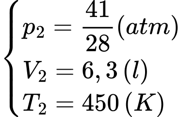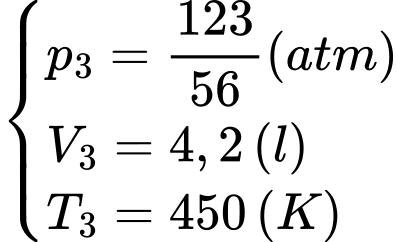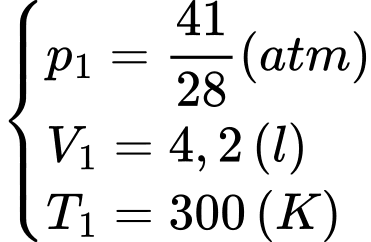 b) Tìm nhiệt độ và áp suất (tính theo đơn vị at) lớn nhất đạt được trong chu trình biến đổi.
