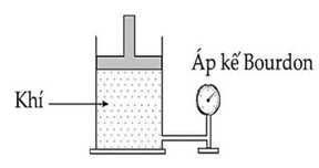 Một loại khí chứa trong một xilanh được lắp một pít-tông như hình bên. Thể tích của nó trong xilanh là 1,5 lít. Chỉ số áp suất trên đồng hồ đo bằng áp kế Bourdon là 2,54.105 N/m2.