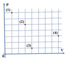 Câu 8 [1029228]: Xét quá trình biến đổi trạng thái của một khối khí lí tưởng. Áp suất và thể tích của khối khí ở các trạng thái (1), (2), (3), và (4) được biểu diễn trong hình bên. Trong số các trạng thái đã cho, trạng thái mà khối khí có nhiệt độ lớn nhất là