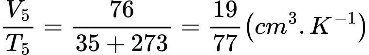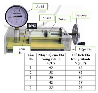 + Sau khoảng 5 phút, dịch chuyển piston để áp suất trở lại giá trị ban đầu, ghi giá trị thể tích và nhiệt độ của khí.