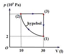 Câu 21 [1029241]: Đồ thị hình bên miêu tả quá trình biến đổi trạng thái của một lượng khí lí tưởng. Trạng thái (1) khối khí có nhiệt độ 27 °C.