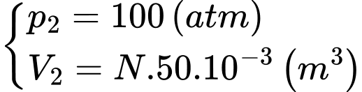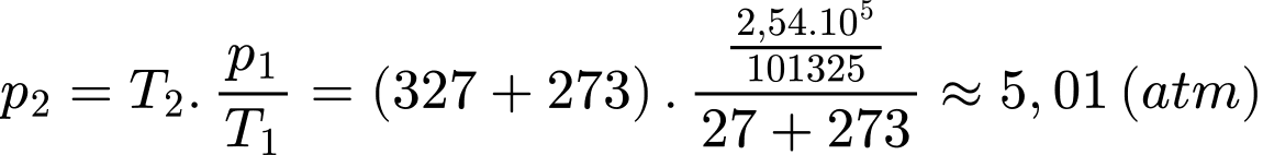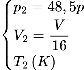 thể tích ban đầu và áp suất tăng 48,5 lần áp suất ban đầu. Nhiệt độ khí sau khi nén có giá trị xấp xỉ bằng