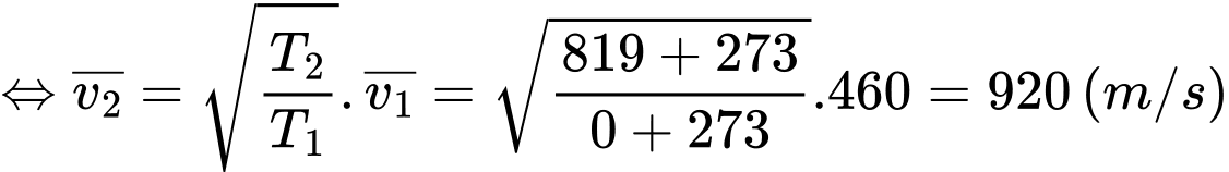 Câu 18 [1029238]: Một mol chất khí ở 0°C các phân tử có tốc độ căn quân phương là 460 m/s. Tốc độ căn quân phương của các phân tử khí này ở nhiệt độ 819 °C là