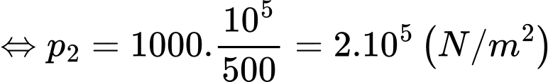 Theo định luật Boyle áp suất tỉ lệ nghịch với thể tích. Nếu thể tích giảm 2 lần