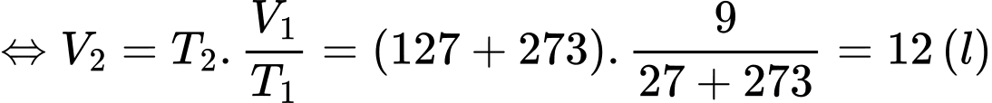 Câu 23 [1029243]: Một khối lượng khí có thể tích 9 lít ở nhiệt độ 27 °C. Nung nóng đẳng áp khối khí này tới 127 °C thì thể tích của nó bằng bao nhiêu lít?
