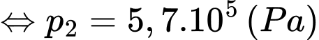 Câu 6 [1029226]: Một bình kín chứa một lượng khí Hydrogen xác định có T1 = 500K, p1 = 105 N/m2 người ta làm nóng khí đến T2 = 1000 K. Coi thể tích, khối lượng khí Hydrogen không đổi. Áp suất p2 của khí Hydrogen là