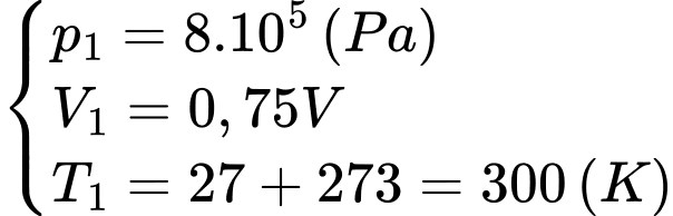 Áp dụng phương trình trạng thái ta có