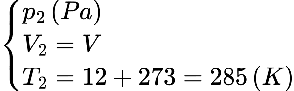 Áp dụng quá trình biến đổi đẳng tích cho khối khí ta có