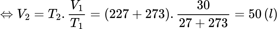 Câu 4 [1029224]: Ở nhiệt độ 27 °C, thể tích của một lượng khí là 30 lít. Ở nhiệt độ 227 °C và áp suất khí không đổi, thể tích của lượng khí đó là