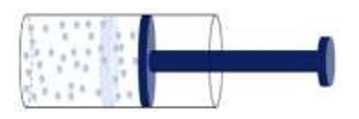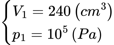 Câu 8 [1029251]: Một lượng khí lí tưởng chứa trong xi lanh có pittong di chuyển không ma sát như hình vẽ. Pittong có tiết diện S = 30 cm2. Ban đầu khối khí có thể tích V1 = 240 cm3, áp suất p1 = 105 Pa. Sau đó, ta kéo pittong di chuyển chậm sang phải một đoạn 4 cm để nhiệt độ khối khí không đổi. Áp suất khí trong xi lanh khi đó đã giảm đi