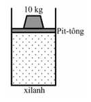 Câu 13 [1029256]: Một lượng khí chứa trong xilanh và pit-tông nhẹ, cột khí có chiều dài 30 cm và diện tích pit-tông là 40 cm2, áp suất khí quyển là p0 = 105 N/m2. Coi nhiệt độ khí bên trong xilanh không đổi và bỏ qua ma sát giữa pit-tông và xilanh. Đặt lên pit-tông một quả cân có khối lượng 10 kg, khi cân bằng pit-tông đã dịch chuyển một đoạn