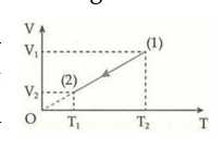 (1) đến (2) là quá trình làm lạnh đẳng áp. Nhiệt độ và thể tích đều giảm do đó hình 2 là phù hợp nhất.
