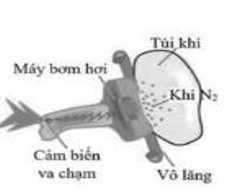 Chất NaN3, được sử dụng trong túi khí ô tô như một nguồn cung cấp khí Nitơ để bơm căng túi khí nhanh chóng khi xảy ra va chạm. Khi ô tô va chạm mạnh vào vật cản, cảm biến va chạm sẽ kích thích làm chất rắn này phân hủy tạo ra khí N2 theo phương trình: 2 NaN3 ⟶ 2Na + 3N2. Khí N2 làm túi khí phồng lên, giúp người lái xe không va chạm trực tiếp với hệ thống lái. Trong một vụ thử nghiệm làm túi khí phồng lên, khi người lái không đè lên túi khí, túi khí có thể tích là 8,75 lít, nhiệt độ 37 °C. Khi người lái đè lên túi khí, túi khí có thể tích là 7,95 lít, áp suất 1,2.105 Pa. Coi nhiệt độ túi khí không thay đổi.