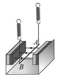 Câu 28 [1043488]: Một đoạn dây dẫn có khối lượng 10 g được treo bằng các lò xo trong từ trường đều có độ lớn cảm ứng từ là