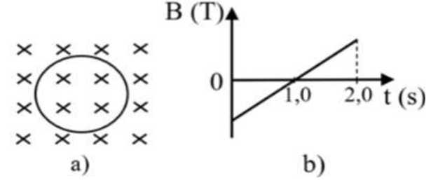 Câu 13 [1044055]: Vòng dây dẫn hình tròn đặt trong một từ trường đều có cảm ứng từ phụ thuộc thời gian theo đồ thị như hình b. Trong giây thứ nhất, các đường sức từ có phương vuông góc và hướng vào trong mặt phẳng hình vẽ (hình a). Ở giây thứ hai dòng điện cảm ứng xuất hiện trong vòng dây có đặc điểm nào sau đây?