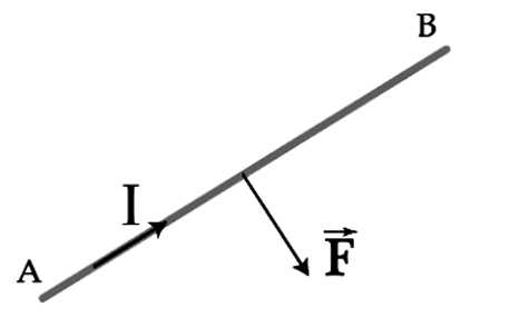 Câu 7 [1043505]: Hình vẽ bên mô tả đoạn dây dẫn AB có dòng điện I chạy từ A đến B và lực từ tác dụng lên AB đều nằm trong mặt phẳng hình vẽ. Theo hướng nhìn vào mặt phẳng hình vẽ thì đoạn dây AB được đặt trong từ trường đều có các đường sức từ