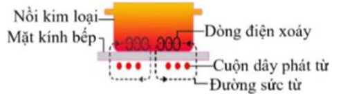 Câu 17 [1044066]: Nguyên lý hoạt động của bếp từ được mô tả như hình bên. Bếp từ làm nóng nồi kim loại bằng cách nào sau đây?