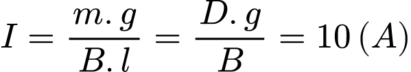 Câu 23 [216306]: Một dây dẫn MN có chiều dài ℓ, khối lượng của một đơn vị dài của dây là D = 0,04 kg/m. Dây được treo bằng hai dây dẫn nhẹ thẳng đứng và đặt trong từ trường đều có B = 0,04 T. Cho dòng điện I qua dây. Xác định chiều và độ lớn của I để lực căng của các dây treo bằng 0.