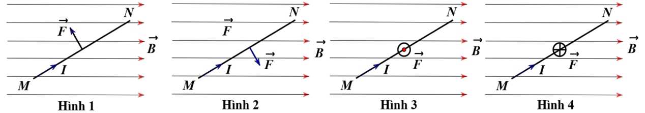 . Hình nào sau đây vẽ đúng hướng của lực từ tác dụng lên đoạn dòng điện MN ?