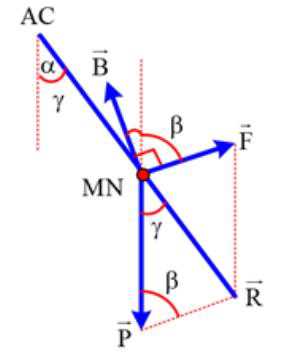 Câu 23 [1049127]: Một thanh kim loại MN có chiều dài ℓ và khối lượng m được treo thẳng ngang bằng hai dây kim loại nhẹ, cứng song song cùng độ dài AM và CN trong từ trường đều, tại nơi có gia tốc trọng trường g. Cảm ứng từ của từ trường này có độ lớn B, hướng vuông góc với thanh MN và chếch lên phía trên hợp với phương thẳng đứng một góc α = 300. Lúc đầu, hai dây treo AM và CN nằm trong mặt phẳng thẳng đứng. Sau đó, cho dòng điện cường độ I chạy qua thanh MN, sao cho 3BIℓ = mg. Gọi γ là góc lệch của mặt phẳng chứa hai dây treo AM và CN so với mặt phẳng thẳng đứng. Giá trị tan γ có thể bằng