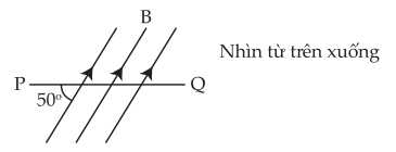 Khung được đưa từ từ vào một từ trường đều có cảm ứng từ B sao cho PQ nằm trong từ trường. Các đường sức từ nằm ngang và tạo với PQ một góc 50°.