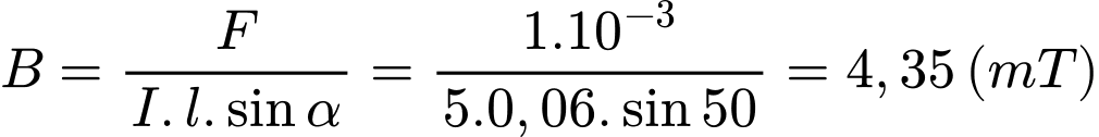 Độ lớn cảm ứng từ B của từ trường là: