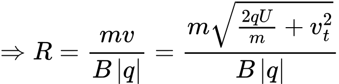 và với vận tốc v của hạt. Bán kính quỹ đạo tròn của hạt trong vùng có từ trường là r. Dựa trên tỉ số