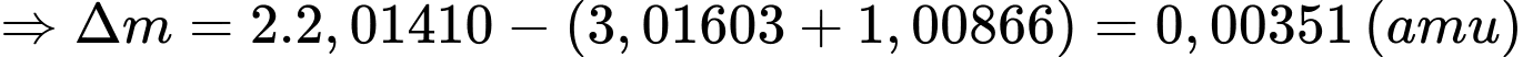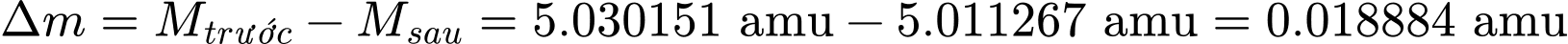 khối lượng của hạt nhân tritium = 3,016049 amu.