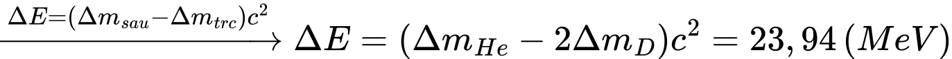 + năng lượng giải phóngCho: khối lượng của hạt nhân deuterium = 2,014102 amu.