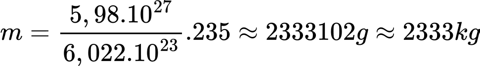 Câu 32 [554079]: Trong phản ứng vỡ hạt nhân Urani 235U năng lượng trung bình toả ra khi phân chia một hạt nhân là 200 MeV. Một nhà máy điện nguyên tử dùng nguyên liệu Urani 235U, có công suất 500 MW, hiệu suất là 20%. Lượng tiêu thụ hàng năm nhiên liệu urani là bao nhiêu kg (kết quả làm tròn đến số nguyên gần nhất)?