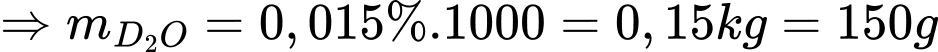 lần lượt là 0,0024 amu và 0,0305 amu. Nước trong tự nhiên có khối lượng riêng của nước là 1000kg/m3 và lẫn 0,015% D2O. Nếu toàn bộ