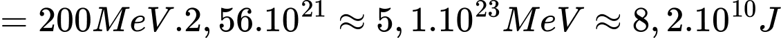 Mỗi hạt tham gia 1 phản ứng phân hạch tỏa ra 200 MeV → Tổng năng lượng tỏa ra