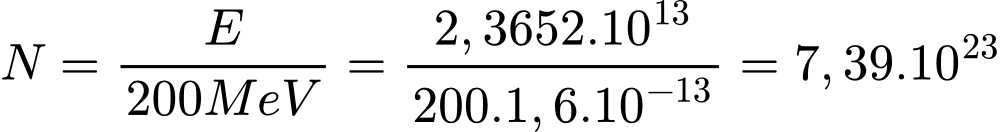 hạt.Mỗi hạt tham gia 1 phản ứng phân hạch tỏa ra 200 MeV → Tổng năng lượng tỏa ra