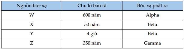 b) Có các nguồn phóng xạ sau đây.