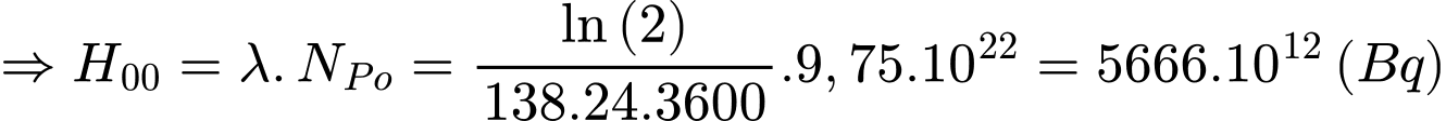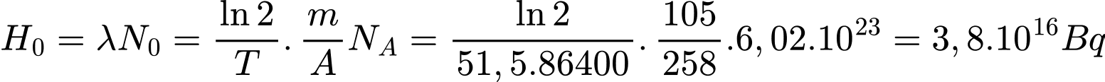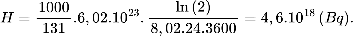 Câu 45 [707562]: Độ phóng xạ của mẫu tại thời điểm ban đầu là x.1012 Bq. Tìm x? ( Kết quả làm tròn đến hàng đơn vị).