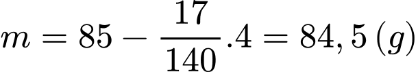 Khối lượng của mẫu là tại thời điểm 276 ngày là tổng khối lượng mẫu trừ đi khối lượng hạt