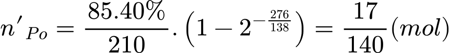 Số mol Po phóng xạ ra sẽ tạo ra số mol alpha tương ứng.Số mol mẫu phóng xạ mất đi sau 276 ngày là