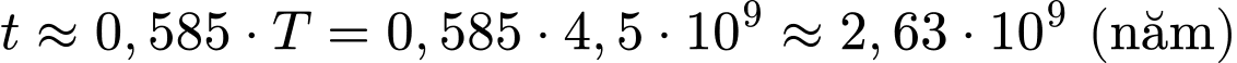 trong mẫu đá tại thời điểm t là 2,0.1022. Tính giá trị của t theo đơn vị năm?