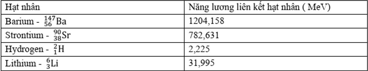 . Lấy khối lượng của các hạt nhân gần bằng số khối của chúng tính theo amu; chu kì bán rã của