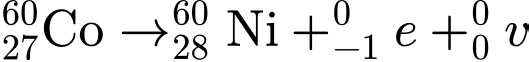 Câu 13 [1043604]: Cobalt-60 là một chất phóng xạ phát ra tia gamma và được ứng dụng để tiêu diệt tế bào ung thư, khử trùng dụng cụ y tế, hoặc kiểm tra chất lượng sản phẩm trong công nghiệp. Hạt Cobalt-60 phân rã phóng xạ theo phương trình