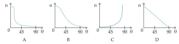 Đồ thị nào sau đây thể hiện tốt nhất sự thay đổi của n từ 0 đến 90°?