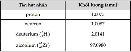 Câu 33 [817810]: Bảng sau cho biết độ hụt khối của một số hạt nhân.