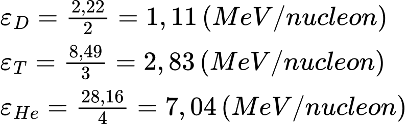 Ta có năng lượng liên kết riêng ứng với các hạt nhân là: