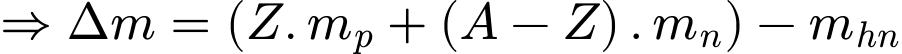có khối lượng m0; biết khối lượng prôtôn là mp và khối lượng nơtrôn là mn. Ta có: