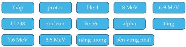 iii) Năng lượng tối đa khoảng __________/nucleon đối với hạt nhân có số khối A = 56 (hạt nhân __________). Giá trị cực đại này cho thấy hạt nhân sắt là hạt nhân __________ trong tự nhiên.
