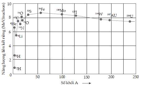 Hình minh họa sự biến thiên của năng lượng liên kết trung bình trên mỗi nucleon theo