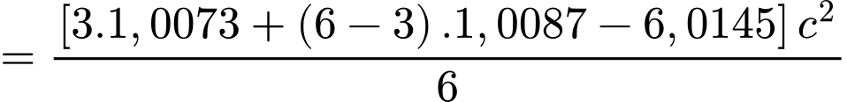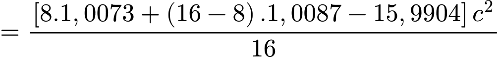 lần lượt là 1,0073 amu; 1,0087 amu; 15,9904u; 6,0145u trong đó 1u = 931,5 MeV/c2. So với năng lượng liên kết riêng của hạt nhân