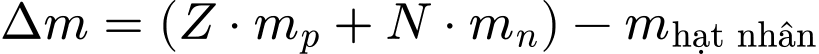 Hiệu giữa khối lượng của hạt nhân và tổng khối lượng của các thành phần cấu thành nó được gọi là độ hụt khối.