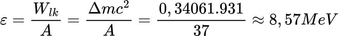 Năng lượng liên kết riêng xác định bằng công thức