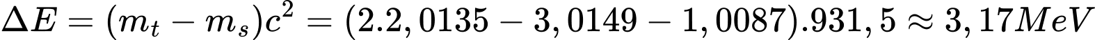 lần lượt là mD=2,0135u; mHe = 3,0149 u; mn = 1,0087u. Phản ứng trên là phản ứng A, tỏa năng lượng 1,8821 MeV.